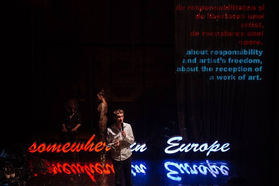 Acțiunea, în toate cele șase scene, este plasată „somewhere in Europe”. În toate cele șase situații de confruntare a „echipei artistice” cu „publicul” și „mass-media”, se dezbate realizarea câte unui proiect cultural ce are ca temă refugiații (o nouă ancoră pentru ca piesa să aibă succes la festivaluri și să sensibilizeze „moda” implicării în acest subiect). Light design-ul mai ajută la intuirea culorilor câte unui steag. Dar, când situația imaginară se petrece în România, nu mai este nevoie de niciun alt indiciu în afară de interpretarea actorilor!!! Și vă asigur că, fiecare dintre voi, a fost martor, în realitate, la cel puțin un episod care seamănă cu momentul din piesă! Tocmai de aceea veți adăuga experiența personală din amintiri dulci-amare, astfel încât veți zâmbi, cel puțin!!!