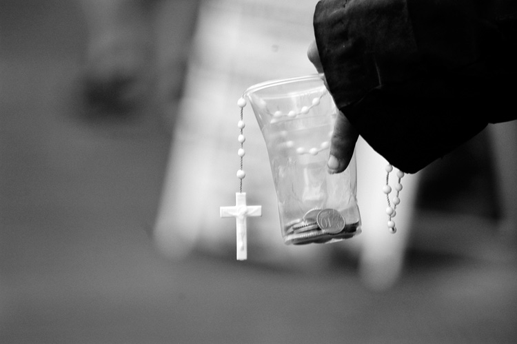 La un moment dat, ușa bisericii s-a deschis și a intrat un om sărman, pe care Părintele, din bunătatea sa, îl mai ajută uneori. Îl mai ajută și ceilalți oameni, grăbiți sau neatenți la povestea lui ori, dimpotrivă, oameni care-l cunosc, de la biserică. Biserica aceasta este locul pentru care omul acesta sărman pleacă de-acasă. Datorită acestui loc, cât un colț de Rai, are și el un rost, are unde să vină. E un om cu puțină minte, pe care cei de dincolo de gardul bisericii l-ar eticheta „cu dizabilități”. Dar, nu-i așa, uneori sunt „fericiți cei săraci cu Duhul”…
