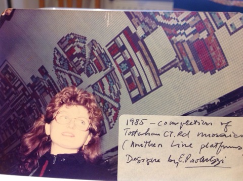Un prieten, David Mayer, m-a chemat de urgentă să-i salvez Vecinul (T. Caley)… de la „o moarte premature”. David, știind ca am studiat și tehnici mozaic în ultimii doi ani de Artă monumentală la Liceul de Artă din Cluj. Motivul? T. Caley începuse producția mozaicului de la Tott. Ct. Rd și pierdea bani, nereușind să livreze la timp. El era plătit pe sq.ft, dar își plătea angajații £/hr și, când l-am cunoscut, avea o capacitate de producție de 5sq.ft/ zi de lucru. La prima demonstrație, eu am produs 27sq.ft. Ca rezultat, am fost făcută imediat partener egal în ICT Mozaic LT. Eu am produs / terminat cu mâna mea Tott.ct. Rd , Oxford Station și Finsbury Park Station (inclusiv desenul 1/1 și întreaga producție).